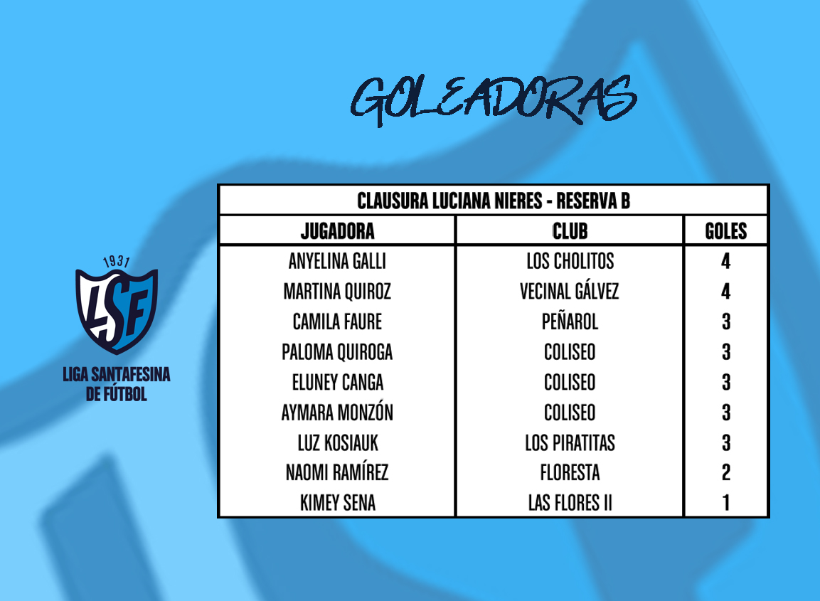 Goleadoras del Fútbol Femenino: Primera A y B y Reserva